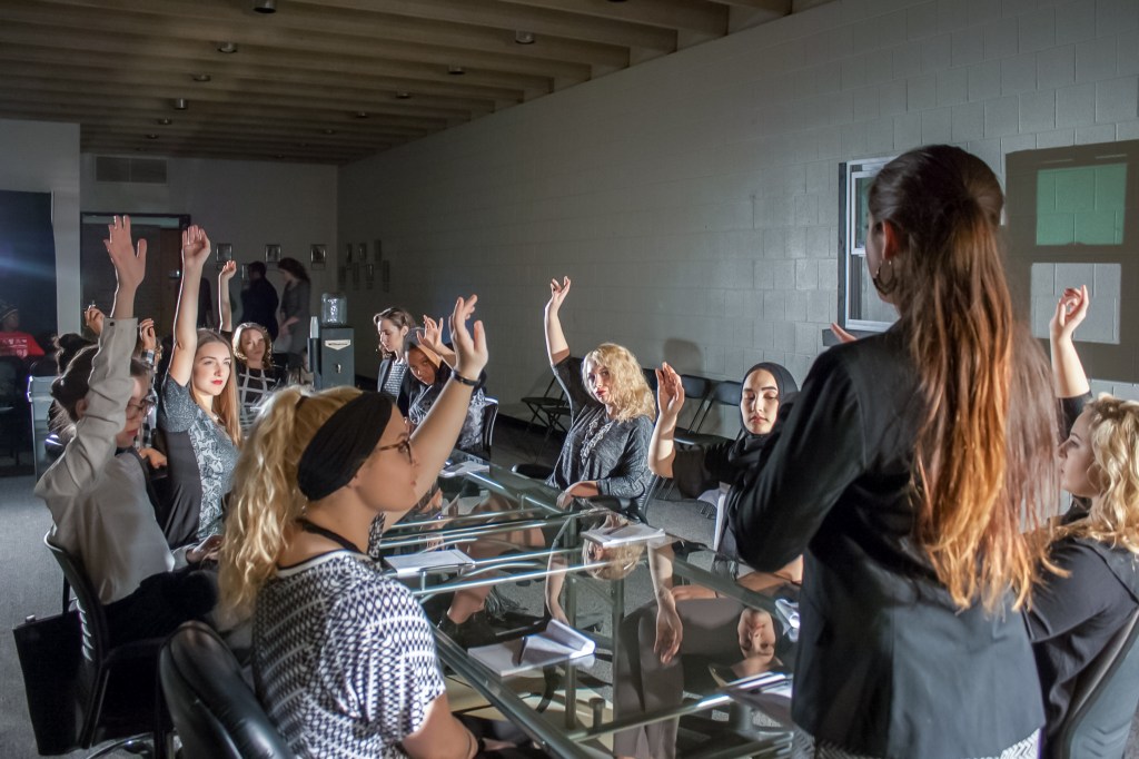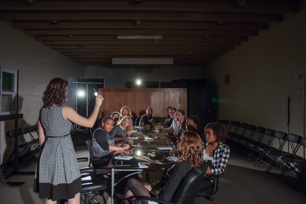 Staged by the student-led Fredonia Performing Arts Company during the 2015 Fall Semester, 12 Angry Jurors is a timeless retelling of the original 1954 teleplay 12 Angry Men. The play explores the immense burden a jury of peers faces when determining another’s fate and how each character’s own histories, prejudices, and biases impact that decision.